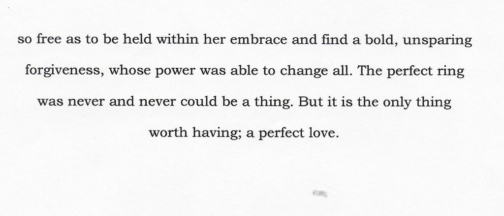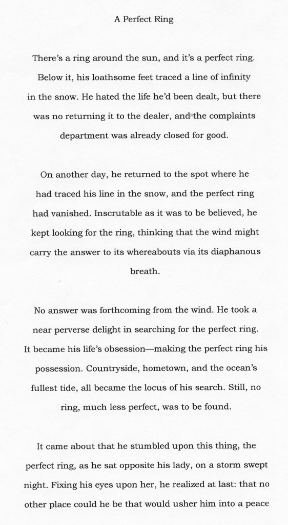 In any event, the following poem of mine, A Perfect Ring, is not entirely autobiographical. I wanted to point that out right up front. This is my blog, not my confessional; and while I have, on occasion, used this platform to reveal some inner workings of my soul, the products of my imagination are just that. Occasionally, God is pleased to make some of His truth bleed through the awkward and halting prose and poetry which I write.