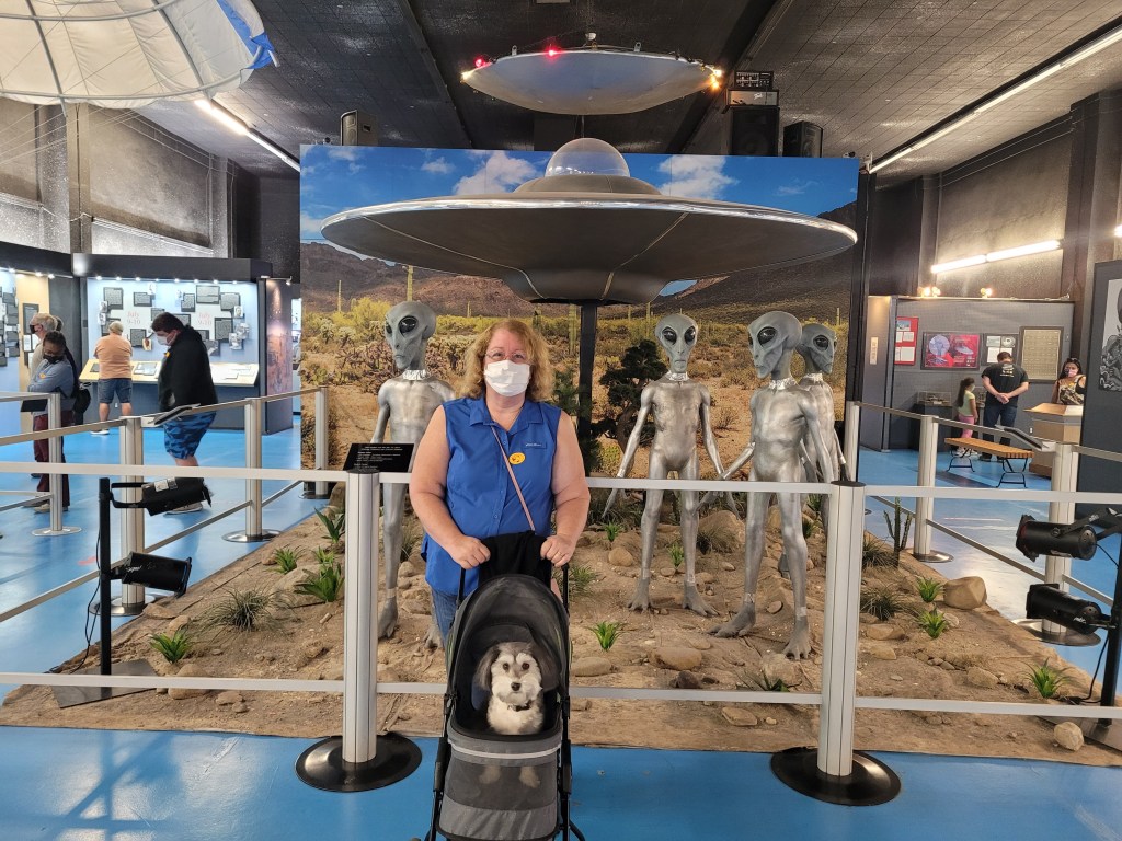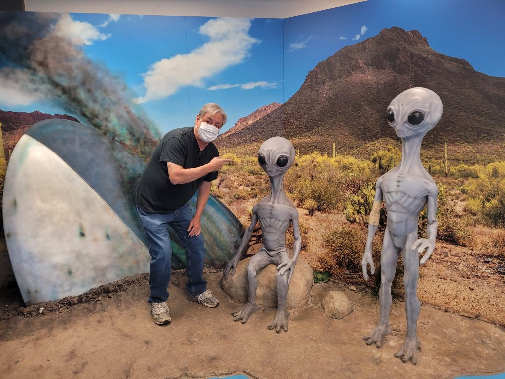 Roswell, NM was a fascinating stop. And as expected, there were numerous curio shops devoted to otherworldly phenomena; that is, if the phenomena you are thinking about consists of tiny visitors from another planet. Ever since 1947, and even before, America has had a fascination with who or what may possibly be out there. And after going through the International UFO Museum & Research Center (pictured above), we got the distinct impression that the possibility of other life in the universe is treated with a very matter-of-fact attitude. Lots of reading was required as the exhibits told the story of the 1947 crash which put Roswell on the map. No breathless, wide-eyed reporting – the actual news reports of the day were replicated with accuracy, leaving it up to the viewer to decide.