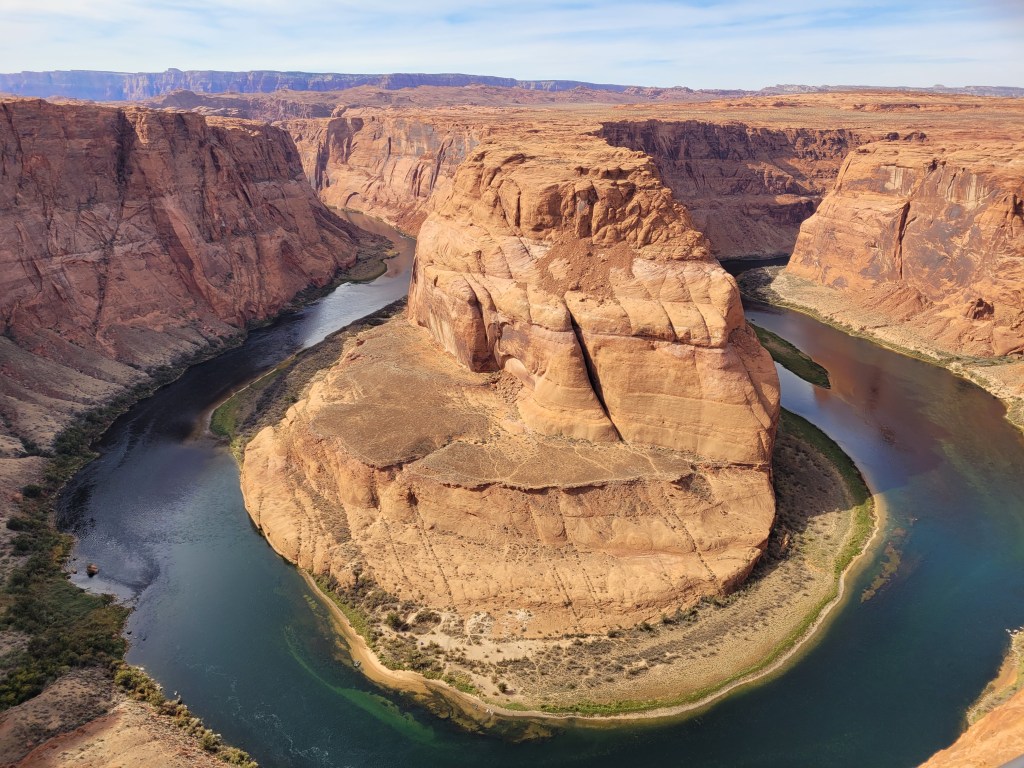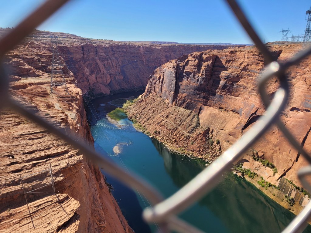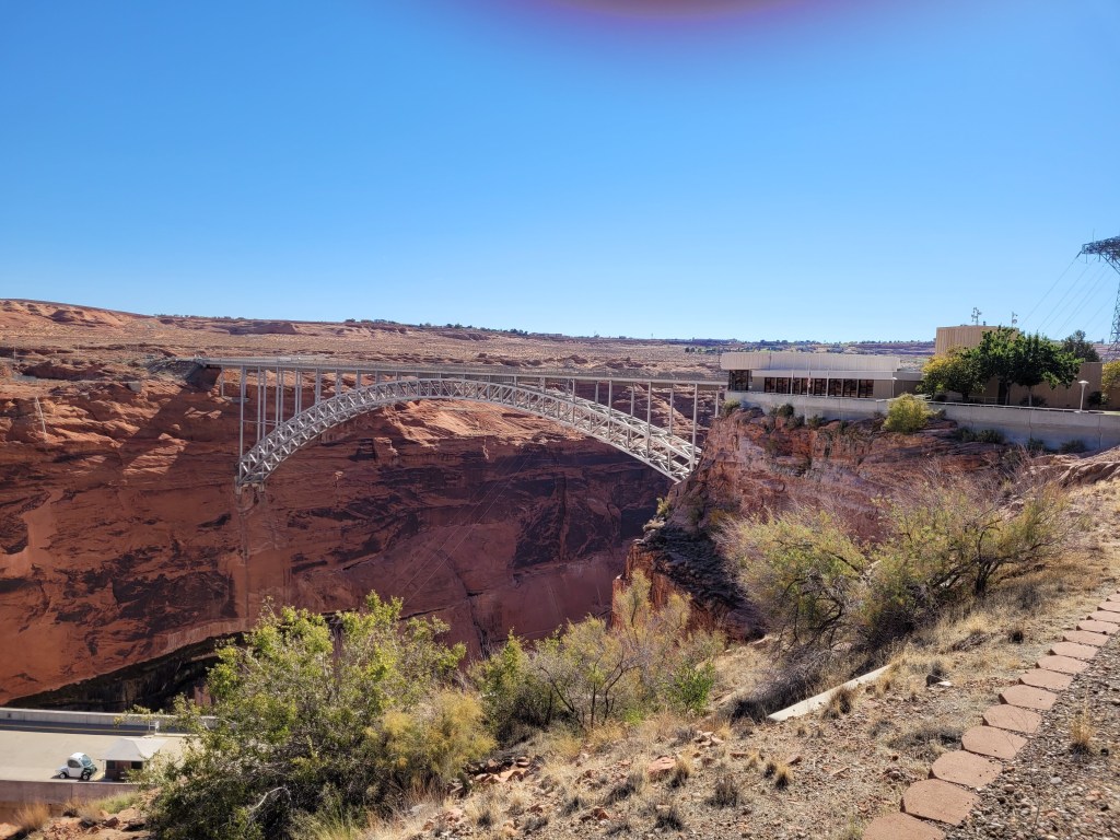 Crossing the Colorado River & Glen Canyon Dam before ascending to Page. The river was dangerously low. Still the setting was stunning as I remembered.